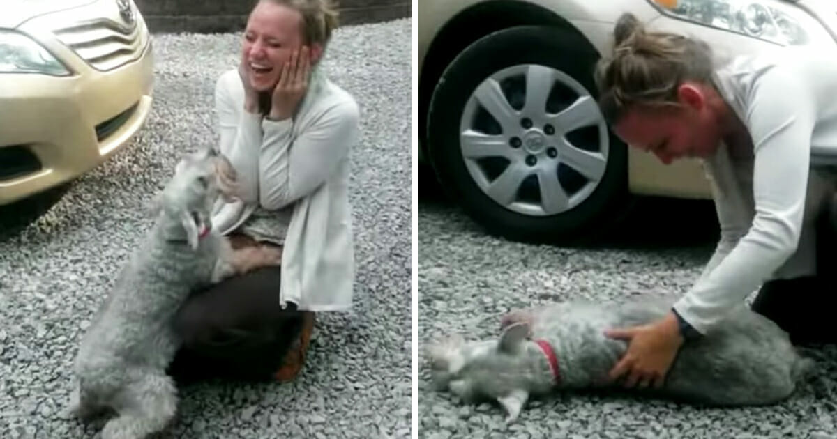 Der har matmor vært bortreist fra hunden sin i to lange år – hvilket tilsvarer hele 14 hundeår. Ikke merkelig da at schnauzeren som heter Casey hadde savnet sin bestevenn.