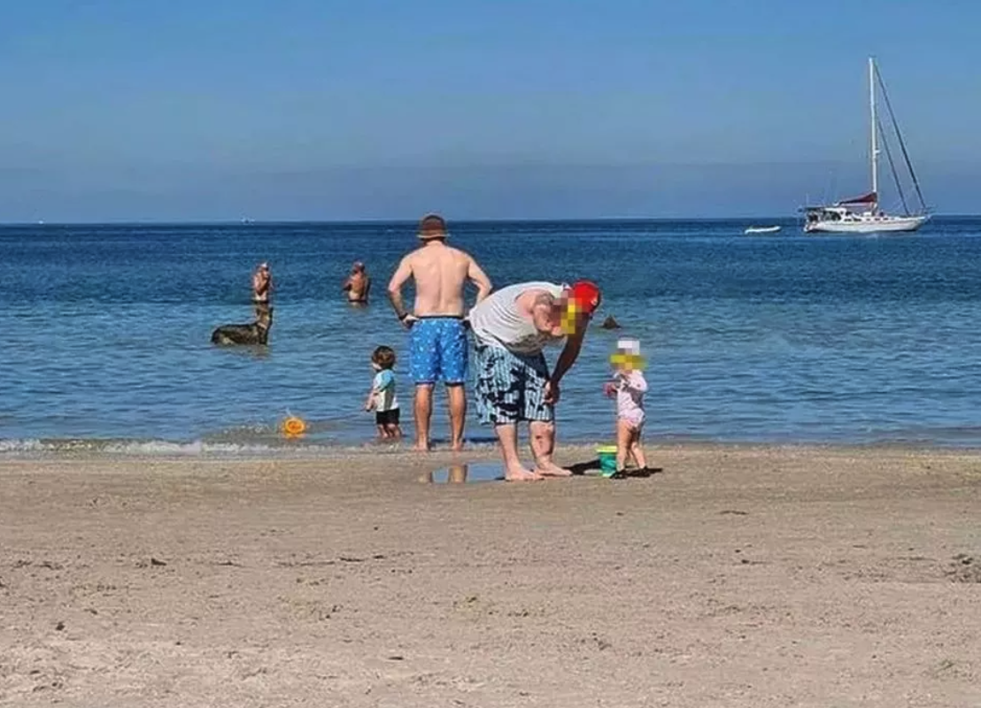 «Det var deres lille barns første besøk på stranden, og mannens partner tok et par bilder for å dokumentere dagen.