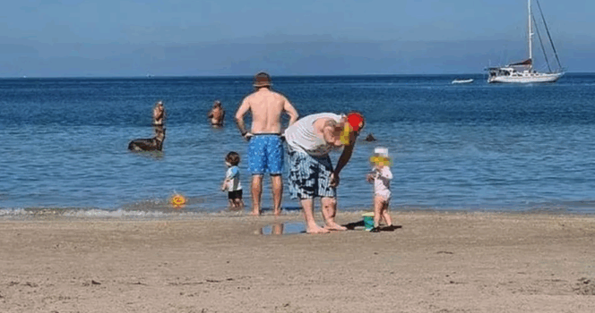 «Det var deres lille barns første besøk på stranden, og mannens partner tok et par bilder for å dokumentere dagen.